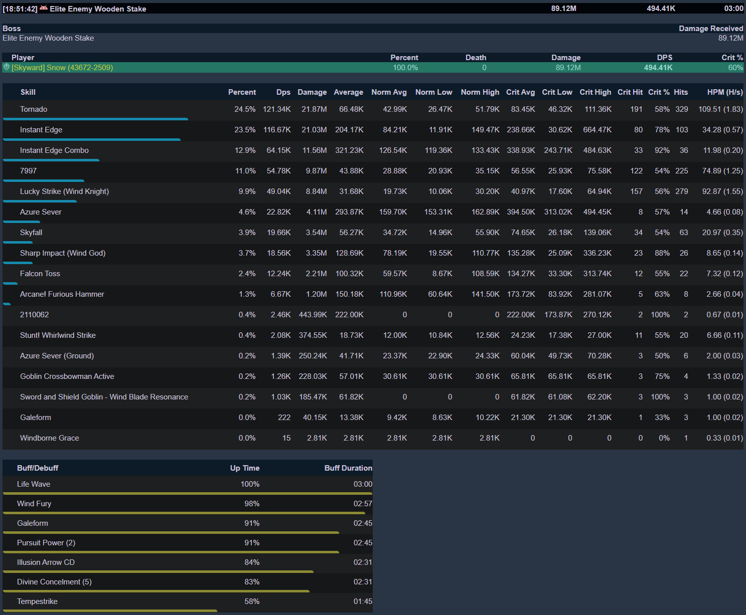 The best and most consistent way to ensure having high Life Wave uptime is to have a lifebind healer in the party, as long as you are getting healed by a lifebind, your life wave will be active (90+% uptime). This is from lifebind’s 2pc set effect, which changes your max hp everytime they heal you.