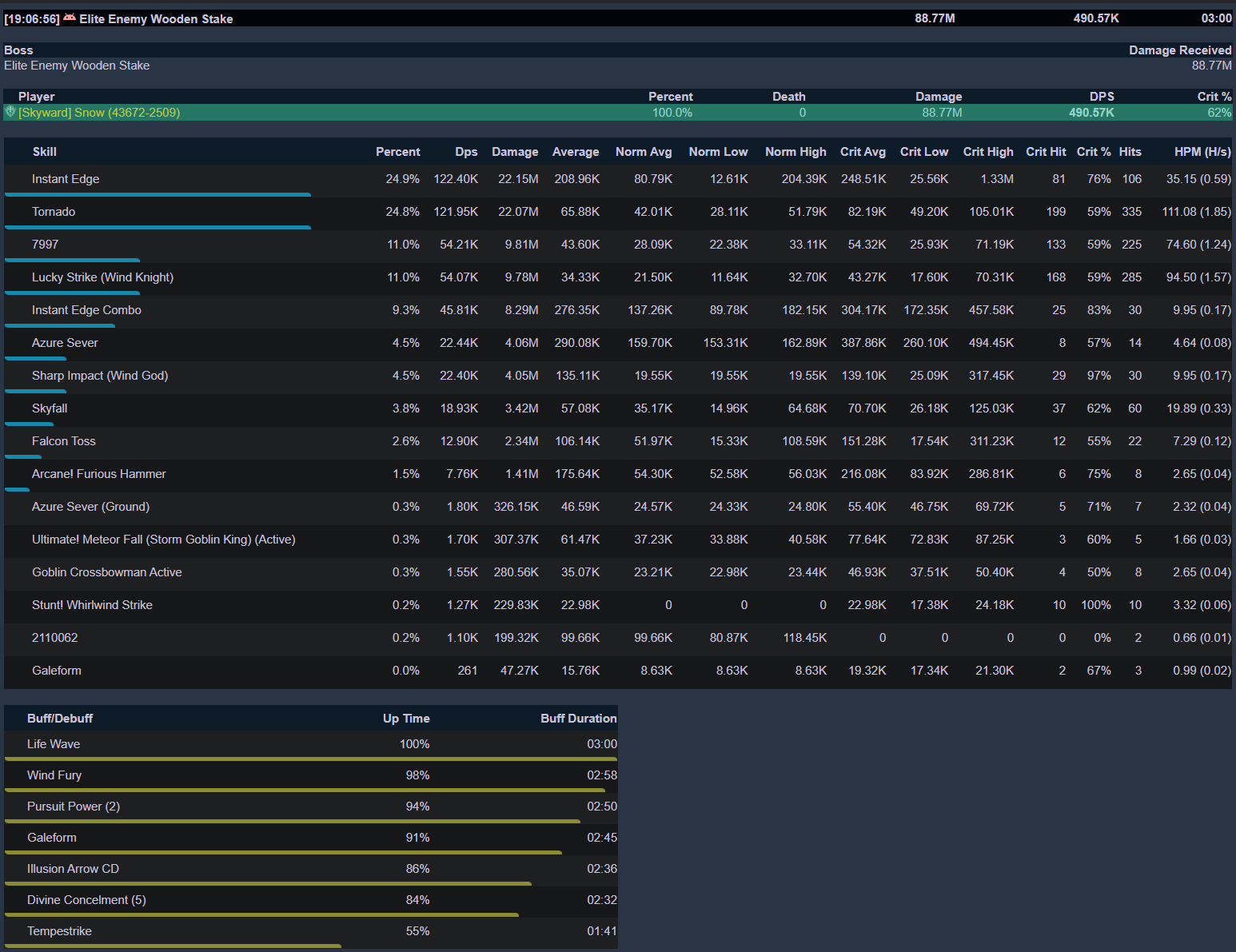 The idea of this build is to use high crit rate to generate more Chasing Steps, which boosts Instant Edge damage and crit rate and generates more Sharp refunds. This in turns reduces the amount of Skyfall needed per rotation.